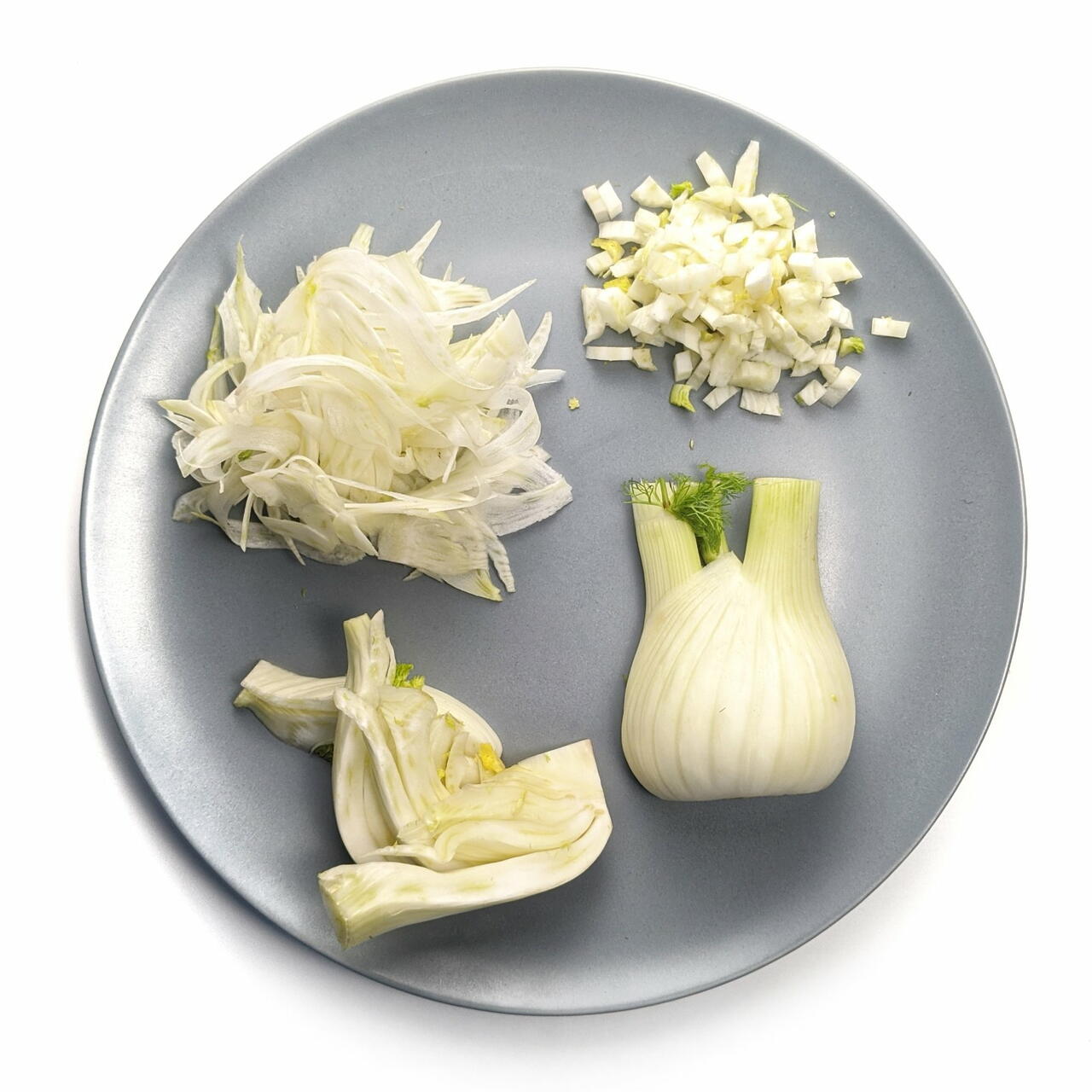 How To Cut Up Fennel - How To Cut A Fennel Bulb The Cookful / For a regular supply of fresh fennel shoots, grow five or plants when they're established, and cut all the stems of one or two of them to ground level.. With the quarter still on its side, slice crosswise to cut the fennel into slices. Fresh fennel resembles a cross between cabbage, celery and dill. Instead of cutting it with a knife, you can gently pull the leaves off the stalk. Cut a thin slice off the root end. Taking a hold of the outer most green stalk, pull it off of the bulb and part of the bulb will come with it and taking all the dirt and grossness that goes along with it.